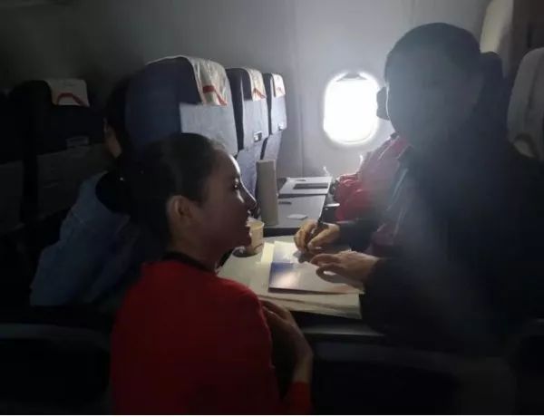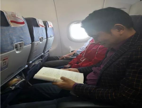 飛機(jī)上,窗外的雪景讓人動(dòng)心。窗內(nèi)的景致也讓人動(dòng)情——曾良策校助、邢斌老師、楊乾海老師、黃俊老師都利用碎片時(shí)間看書。特別讓我們感到神奇的是,飛機(jī)上一位素不相識(shí)的空姐,看到認(rèn)真閱讀的曾校助,居然非常崇拜地蹲下來(lái)求他簽字留言,成為曾校助又一個(gè)空姐粉絲。