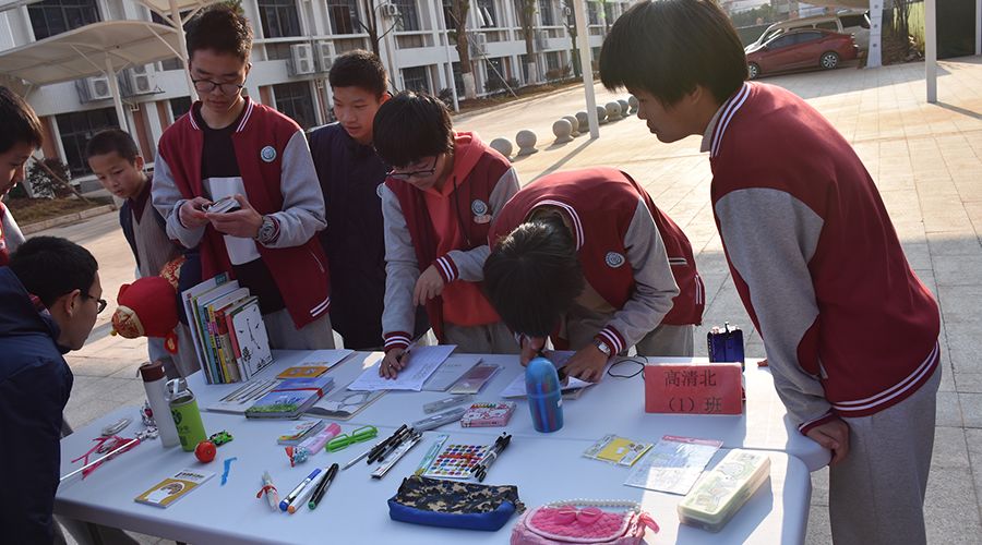 1月5日下午3:30,學部各班級同學就迅速行動起來,將精心準備好的義賣物品、橫幅、銷售裝備等拿到攤位。各班級快速有序的將自家“超市”布置完畢,校園瞬間被點燃,集市人山人海。每家“超市”都別出心裁的通過標語、口號展示自家店鋪的特色。