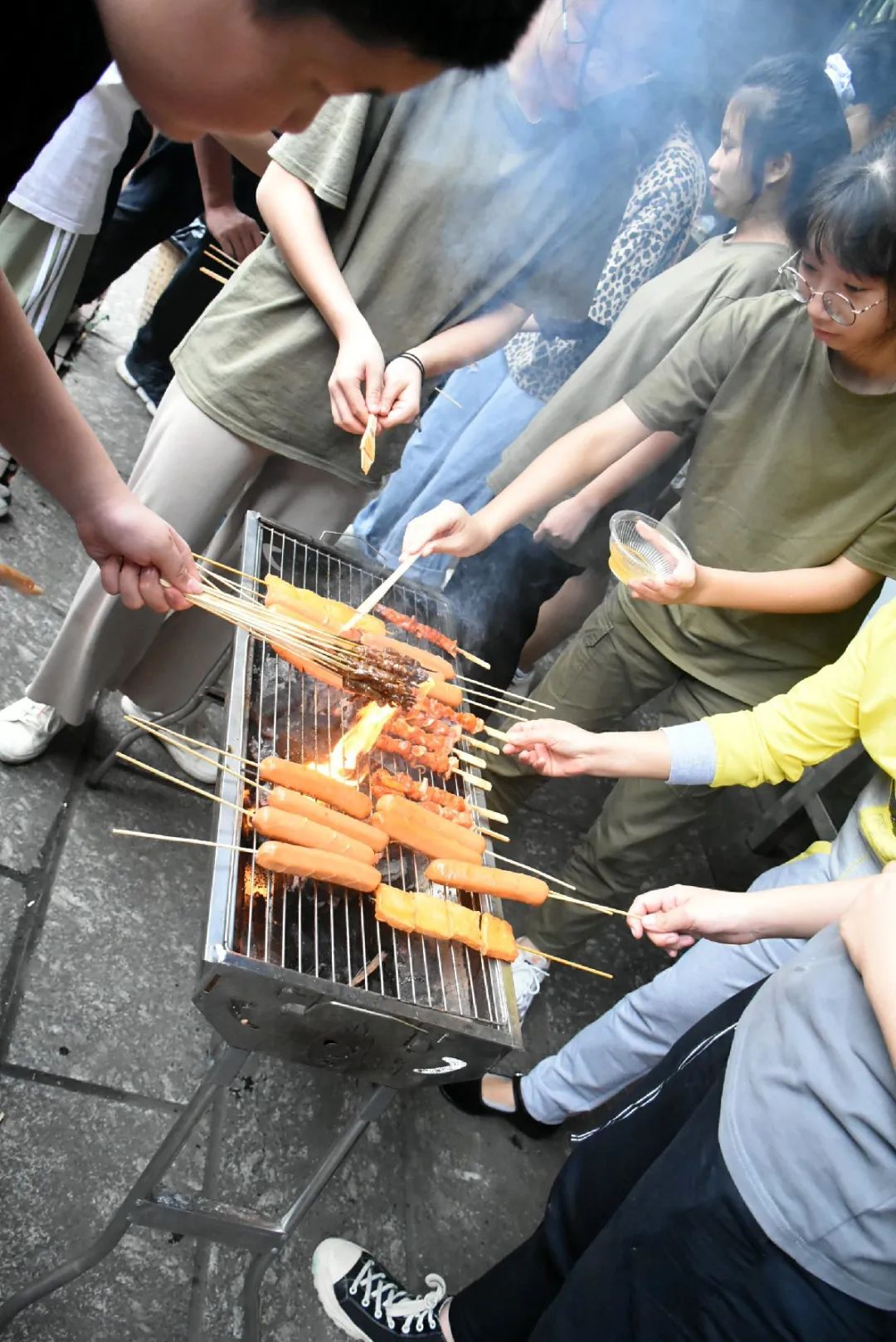 我們的重要嘉賓——科任老師陸續(xù)華麗登場,一同共享午餐。這些誘人的燒烤食材讓人垂涎三尺,大家迫不及待地圍著燒烤架,想要立即把炭火燒起來。