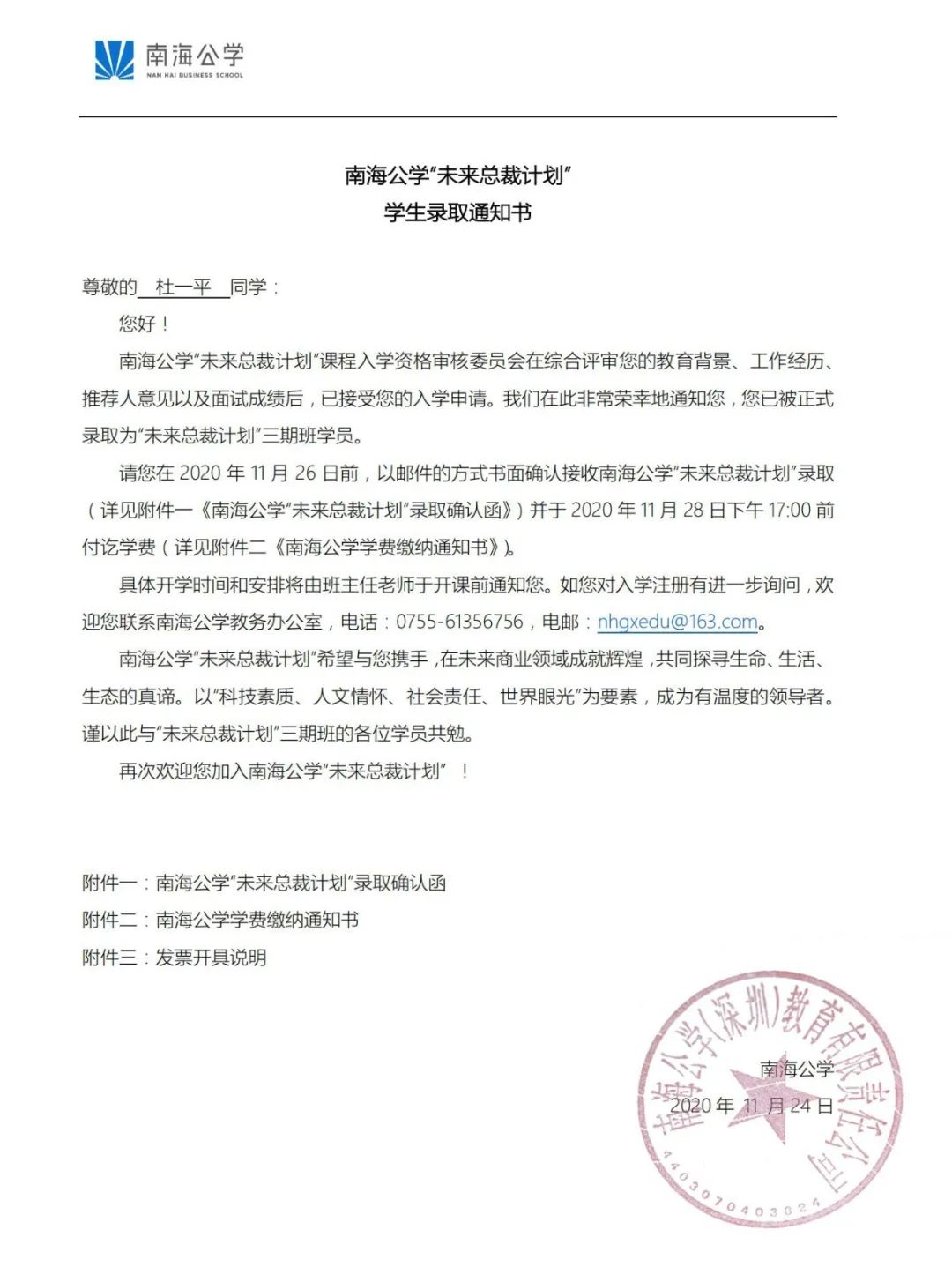 被南海公學(xué)正式錄取為