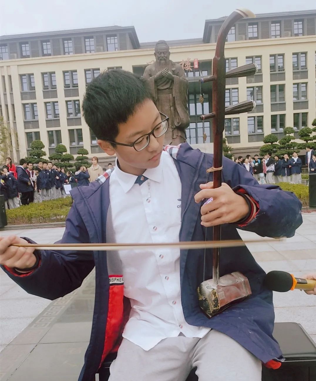 揚(yáng)琴、吉他、鋼琴、長(zhǎng)號(hào)等樂(lè)器輪番上場(chǎng),街舞、說(shuō)唱、中國(guó)舞、朗誦等表演方式層出不窮。火熱的節(jié)奏,勁爆的音樂(lè),悠揚(yáng)的樂(lè)聲在孔子廣場(chǎng)交織,古韻與活力相匯,構(gòu)成一篇和諧的樂(lè)章。