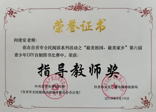 學(xué)生獲自貢市第六屆青少年DIY 自制圖書比賽一等獎。