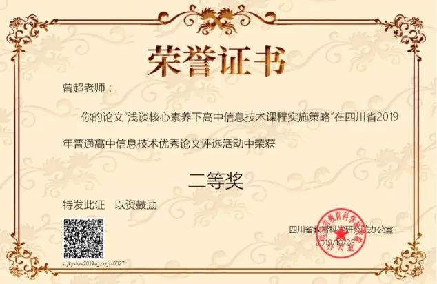 學(xué)生獲2019年四川省中小學(xué)電腦制作活動機器人競賽省二等獎1項、三等獎2項。