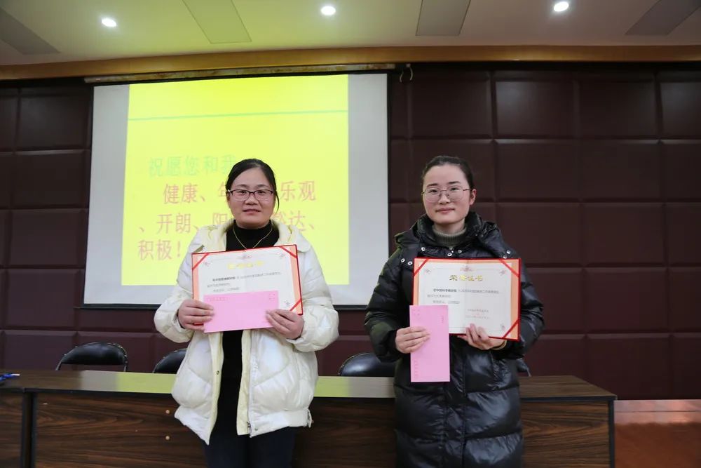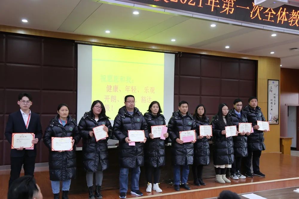 謝校長熱情高昂地宣讀獎項類別及其獲獎名單,各位獲獎教職工分別按照優(yōu)秀備課組、優(yōu)秀班主任,優(yōu)秀新銳教師,年度優(yōu)秀老師,優(yōu)秀職工、抗疫先鋒、優(yōu)秀宣傳工作者的獲獎順序,在熱烈地掌聲中紛紛上臺接受領(lǐng)導(dǎo)頒獎。